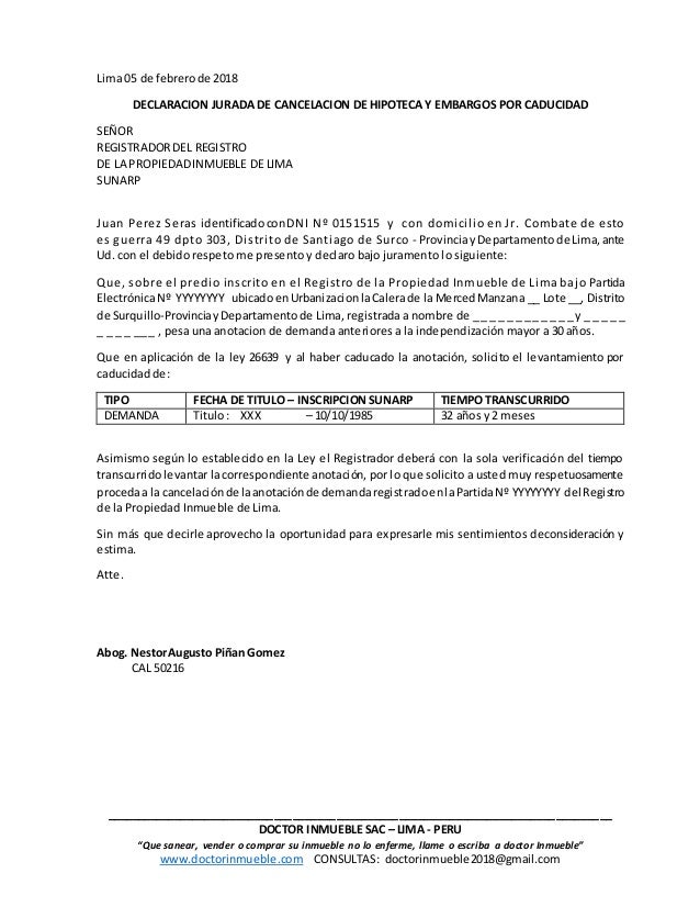 Declaracion Jurada De Cancelacion X Caducidad Yonel Lopez Hipoteca Comercial Finanzas Y Administracion Del Dinero