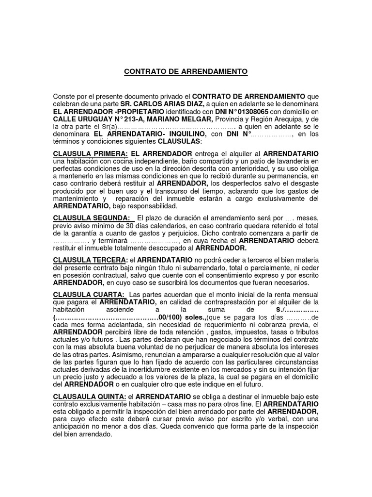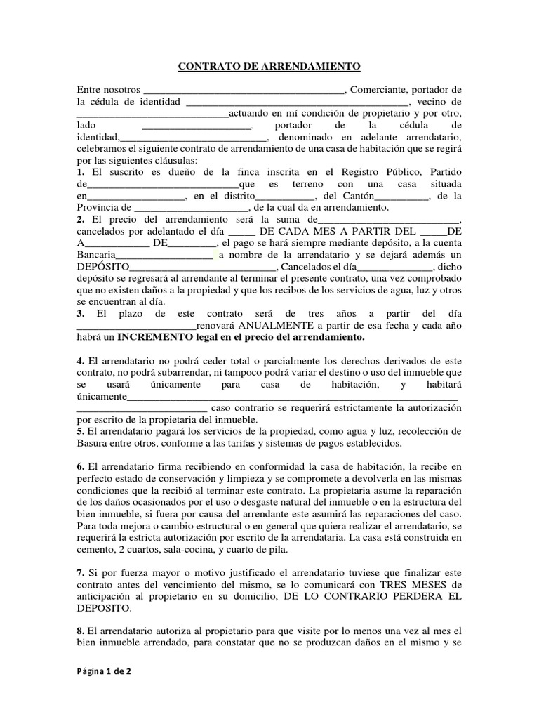 Modelo y Plantilla General de Contrato de Arrendamiento o Alquiler de Garaje entre Particulares Clusulas bsicas. As mismo tambin se tendr que colocar en el documento la cantidad exacta y los plazos de la misma. A Datos de ambas partes.