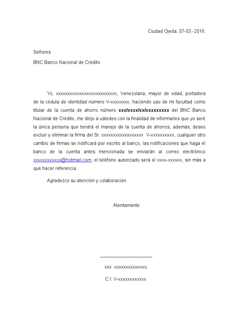 Puede utilizar el teclado virtual para ingresar su nombre de usuario. Modelo de carta para cambio de firmas en un banco La alcaldesa ha felicitado a los profesionales que asumen estas nuevas responsabilidades que cuentan con gran experiencia. SOLICITUD DE CAMBIO DE FIRMAS BANCARIAS.