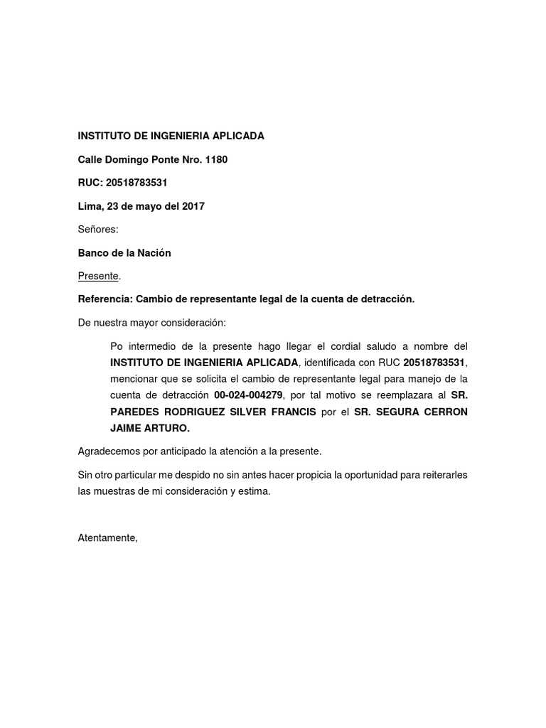 Ejemplo de representante legal. Luego lo recibes en formato Word para poder modificar lo que quieras. Dom Abr 10 2011 114 am.