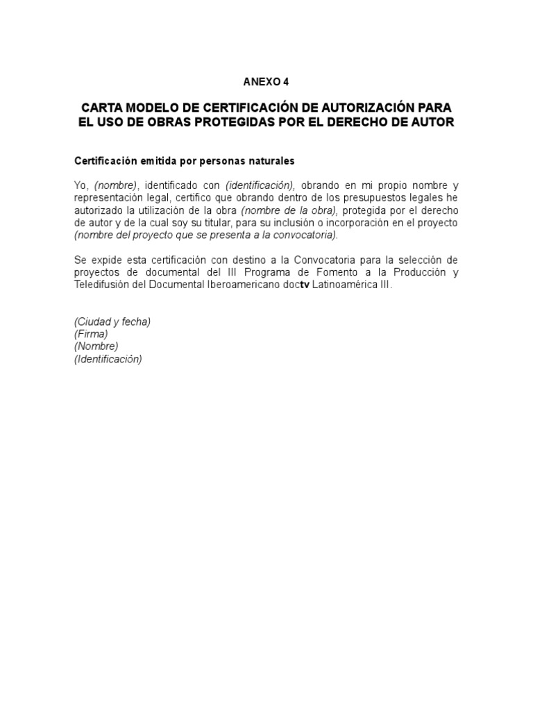 Anexo 4 Carta Modelo Autorizacion De Derecho De Autor Pdf