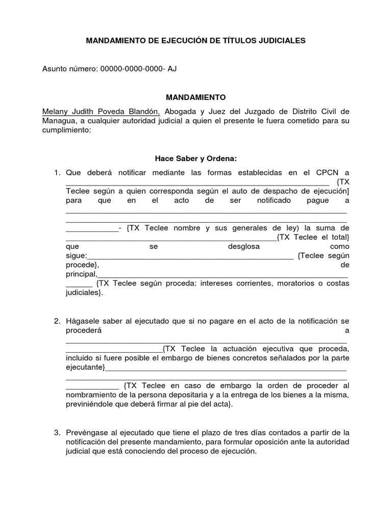 Modelo De Mandamiento De Ejecucion Pdf Gobierno Justicia