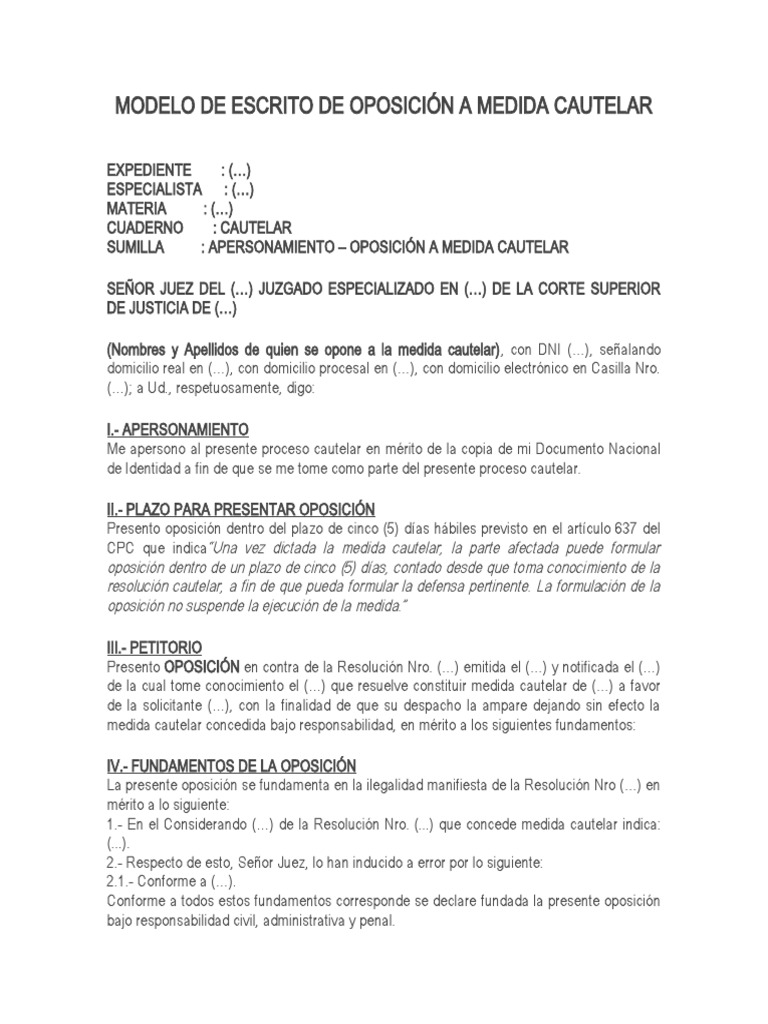 Modelo De Escrito De Oposicion A Medida Cautelar Mandato Esfera Publica