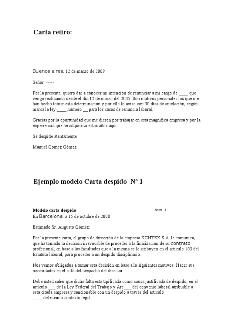 Modelos De Carta De Despido Simple Para Descargar Carta Word