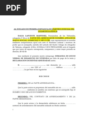 Modelo De Demanda De Desahucio Por Falta De Pago Desalojo Competencia Ley