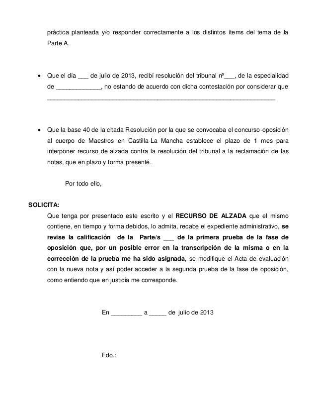 Modelo De Recurso De Alzada 1 Prueba Maestros Oposicion 2015