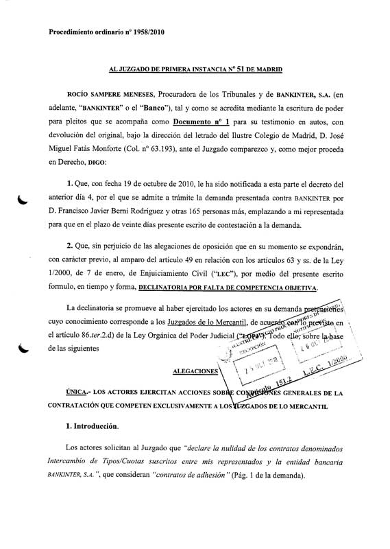 Poned la demanda en manos de un abogado experto en banca y que os diga si procede iniciar el procedimiento judicial. Sentencia nulidad clausula suelo y gastos de hipoteca El caso Supuesto de hecho Torrejn de Ardoz 28-09-2011 En fecha 28 de septiembre de 2011 Don Jaime firm escritura. Hay diversos modelos para hacer este reclamo.
