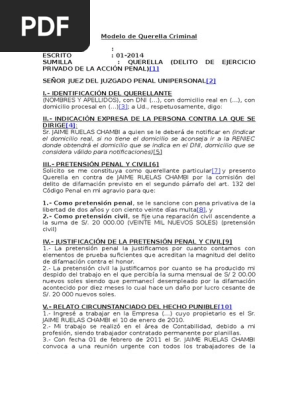 Doc Modelo De Querella Criminal Paul Puente De La Vega Paz Academia Edu